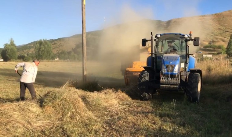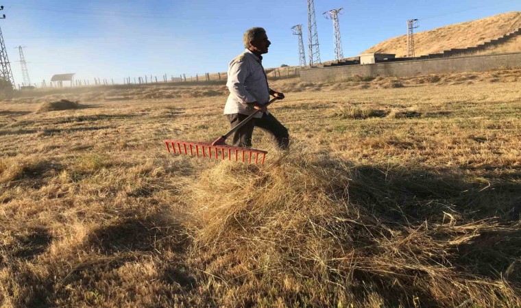 Geçimini hayvancılıkla sağlayan besiciler, kış aylarında hayvanlarına verecekleri yem ve samanları, kavurucu güneşin altında hazırlıyor. Bingöl’ün Solhan ilçesine bağlı Yenibaşak köyündeki besiciler, biçtikleri otları harman makinesine vuruyor. Yenibaşak köyünde bir mezrada oturan ve yıllardır besicilik yapan Selahattin Tan, 50’ye yakın küçükbaş hayvanının samanını sıcak havalara rağmen hazırlıyor. Tan, patosa vurduğu otları köye yaklaşık 7 kilometre uzaklıktaki mezrasına götürüyor.