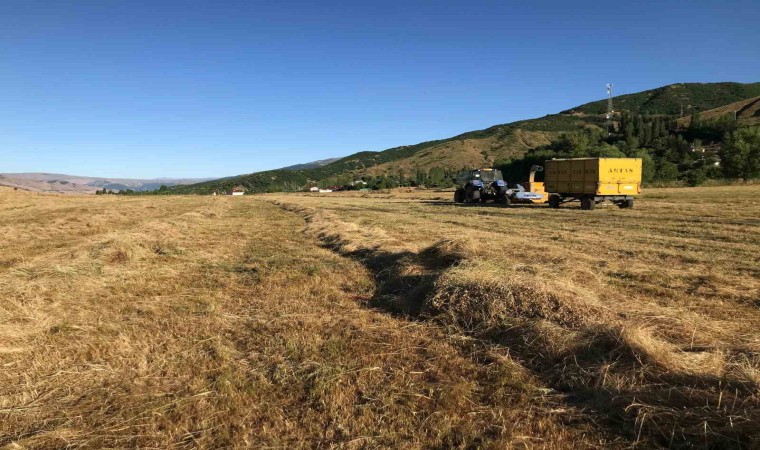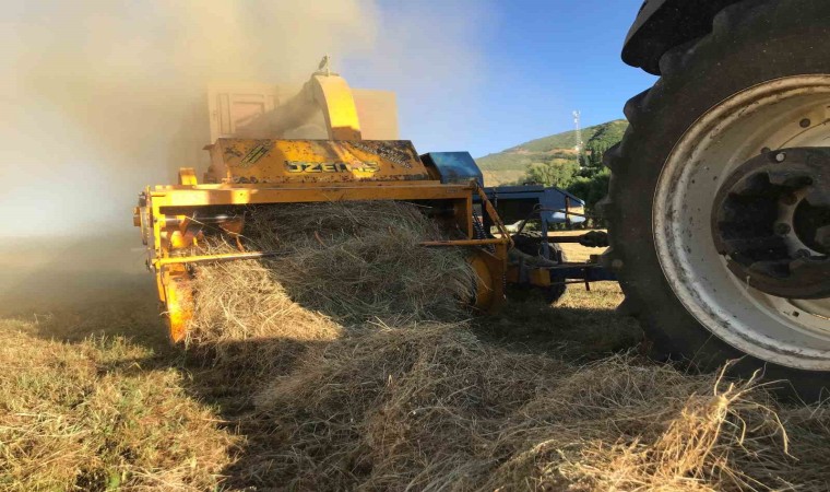 Bingöl’ün Solhan ilçesinde kış aylarına hazırlanan besiciler, yüksek sıcaklığa rağmen kış aylarında hayvanlarına verecekleri samanları hazırlıyor.