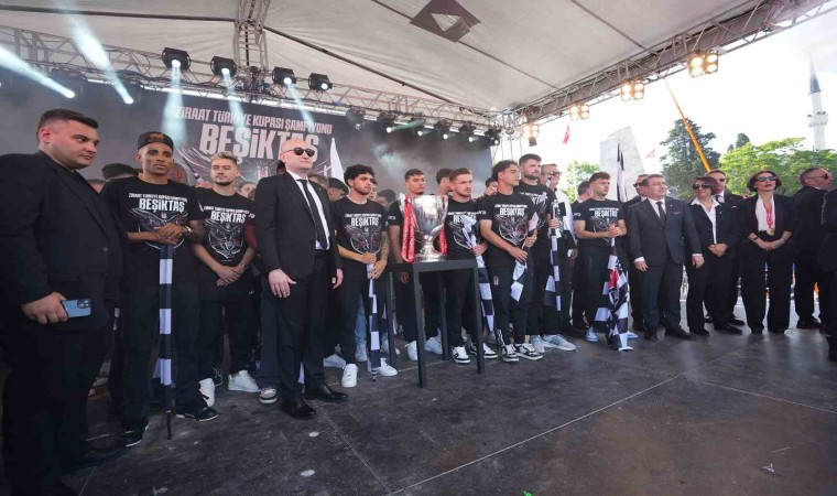 Trendyol Süper Lig’de istediği gibi bir sezon geçiremeyen Beşiktaş, Ziraat Türkiye Kupası’nda elde ettiği şampiyonluğu taraftarlarıyla kutladı. Siyah-beyazlı taraftarların yoğun ilgi gösterdiği organizasyon, Beşiktaş İskele Meydanı’nda gerçekleştirildi. Beşiktaş Başkanı Hasan Arat ve yönetim kurulu üyelerinin tam kadro katılım sağladığı kutlamada siyah-beyazlı futbolcular ve teknik ekip de yer aldı.