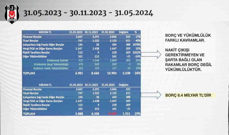 Beşiktaş Genel Sekreteri Kaan Şakul, siyah-beyazlı kulübün borcunun 8 milyar 429 milyon TL olduğunu açıkladı.