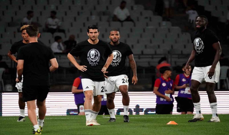 Beşiktaşlı futbolcular, Fatih Karagümrük maçı öncesi ısınmaya üzerinde kulübün onursal başkanı Süleyman Seba’nın fotoğrafının bulunduğu tişörtlerle çıktı.