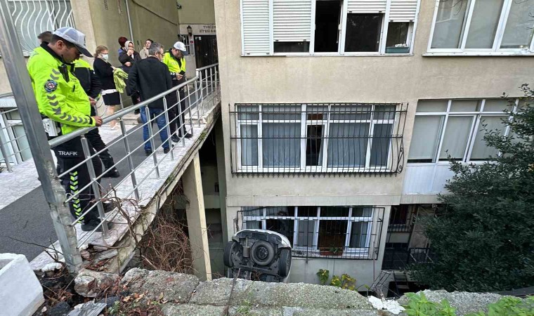 Beşiktaş’ta otomobilliyle yokuş aşağıya inen kadın sürücünün fren yerine gaza basınca korkulukları kırarak bina boşluğuna uçtuğu anların görüntüleri ortaya çıktı. Yaklaşık 8 metreden aşağıya uçan ve zemin kattaki dairenin demirliklerine çarpan kadın, sıkıştığı araçtan itfaiye tarafından kurtarılarak ambulansla hastaneye kaldırılmıştı.