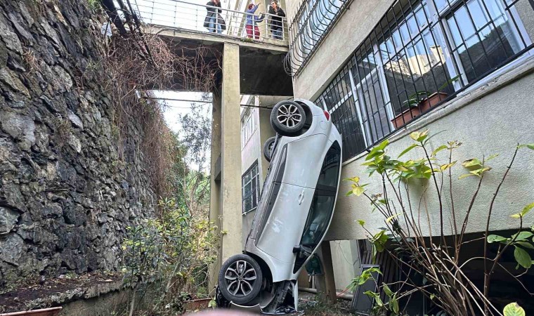 Öte yandan polis ekipleri kaza yerinde inceleme yaparak, tutanak tuttu. Aracı gören bina sakinleri ise şoke olurken, boşluktaki otomobil çekici yardımıyla yarım saatlik çalışma sonucu bulunduğu yerden çıkartıldı. Araç ardından emniyet otoparkına götürüldü. Polis ekipleri olayla ilgili çalışma başlattı.