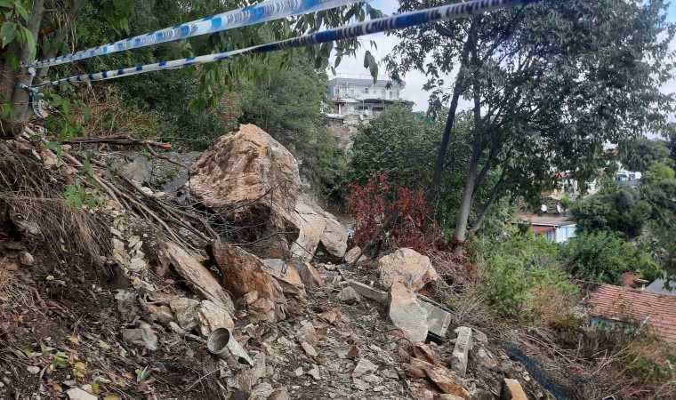 Beşiktaş’ta gecekonduların bulunduğu alana kaya kütlesi düştü. Olayda ölen ya da yaralanan olmazken, bir gecekonduya ait kömürlük kullanılamayacak hale geldi.