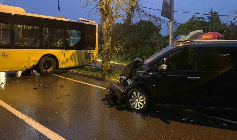 Beşiktaş’ta İETT otobüsü ile bir aracın çarpıştığı kazada 2 kişi yaralandı. Kaza nedeniyle cadde tamamen trafiğe kapanırken, yolu kullanmak isteyen bir ambulans zor anlar yaşadı.