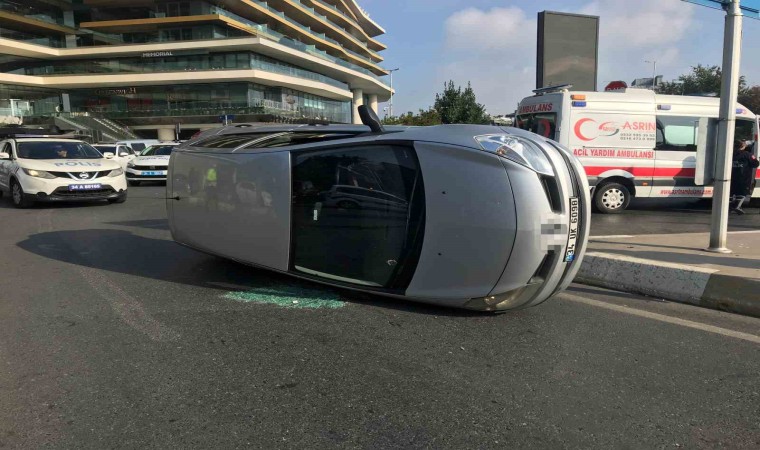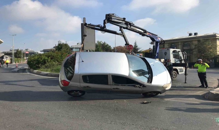 Beşiktaş’ta sürücülerin yol tartışması sırasında refüje çarpan araç yan yattı. Kazada yaralı bulunmazken, yan yatan araç çekici yardımıyla olay yerinden kaldırıldı.