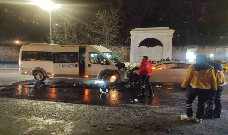 Kaza saat 01.45 sıralarında Beşiktaş Dolmabahçe Caddesi’nde meydana geldi. İddiaya göre 35 APN 436 plakalı otomobilin sürücüsü bariyere çarpıp direksiyon hakimiyetini kaybetti. Sürücüsünün direksiyon hakimiyetini kaybettiği otomobil, şeridinde ilerleyen 34 LAK 476 plakalı servis minibüsüne çarptı. Kazayı gören çevredeki vatandaşlar polis ve sağlık ekiplerine ihbarda bulundu. İhbar üzerine olay yerine polis ve sağlık ekipleri sevk edildi.