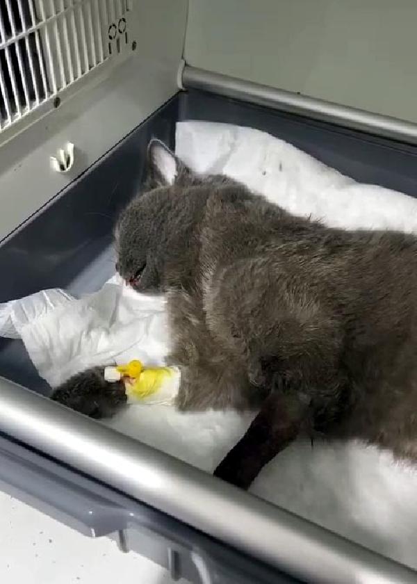 Beşinci kattan düşen kedinin bacağı kırıldı