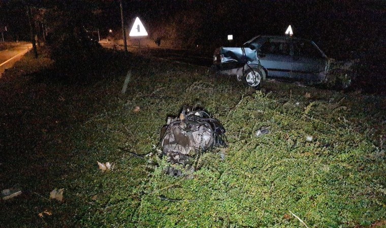 Zonguldak Alaplı’da kontrolden çıkan araç beton bariyerlere çarptı. Çarpmanın etkisiyle aracın motoru yola fırlarken şoförün burnu bile kanamadı.