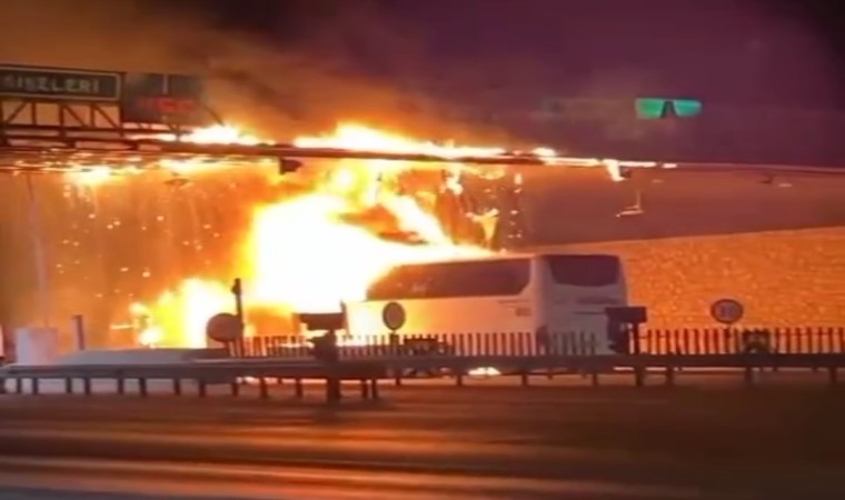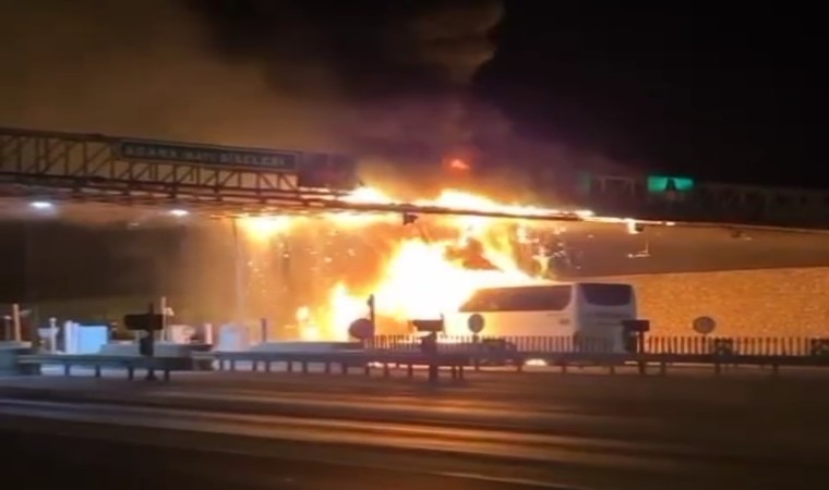 Adana’da, A.A firmasına ait yolcu otobüsünün gişelere çarpması sonucu çıkan yangında 6 kişi yaralanırken araç demir yığınına döndü.
