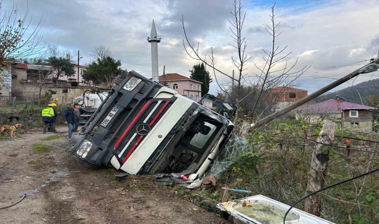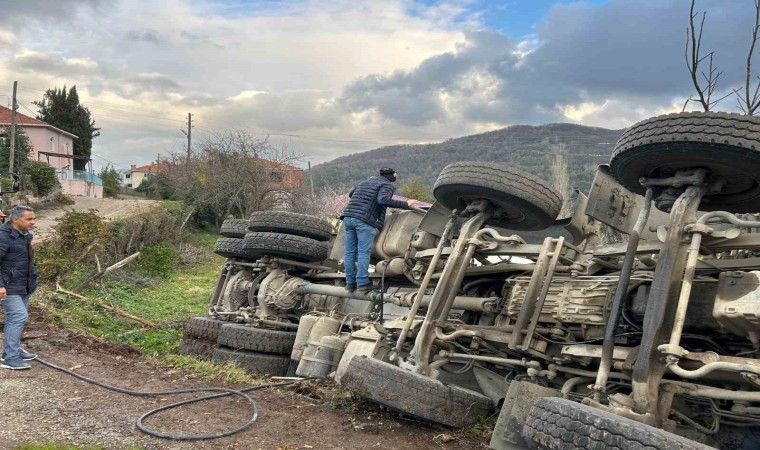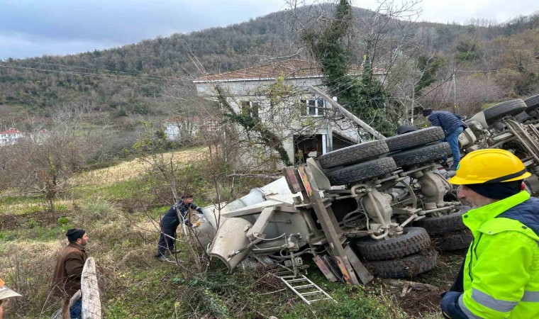 Kastamonu’nun Cide ilçesinde devrilen beton mikserinin sürücüsü yara almadan kurtuldu.