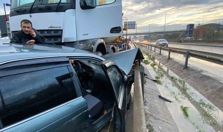 Kocaeli’nin İzmit ilçesinde beton mikseri ile çarpışan otomobil kullanılamaz geldi, sürücüsü ise yaralandı.