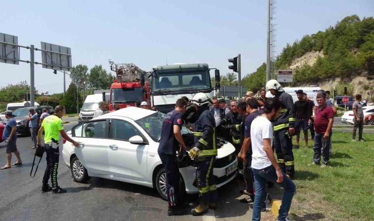 Kaza, Antalya-Manavgat D-400 Karayolu Çolaklı Jandarma kamp kavşağında meydana geldi. Manavgat istikametine seyir halindeki Mevlüt Y. idaresindeki 07 JV 875 plakalı beton mikseri, Tilkiler yönünden kavşağa çıkan Erkan E. yönetimindeki 34 GKL 329 plakalı otomobil ile çarpıştı. Kazayı görenler durumu 112 Acil Çağrı Merkezi’ne bildirdi. Otomobilin hurdaya döndüğü kazada sıkışan sürücüyü Antalya Büyükşehir Belediyesi İtfaiyesi Manavgat birimine bağlı kurtarma ekibi çıkardı. Kazada yaralanan otomobil sürücüsü Erkan E., yolcular Metehan E., Ömer E. ve Esma Esla E. sağlık ekiplerinin olay yerindeki müdahalesinin ardından ambulansla hastaneye kaldırıldı. Otomobil sürücüsünün hayati tehlikesinin bulunduğu bildirildi.