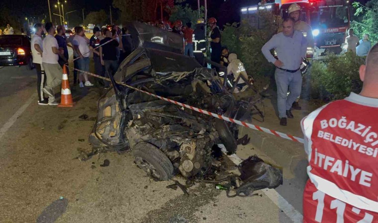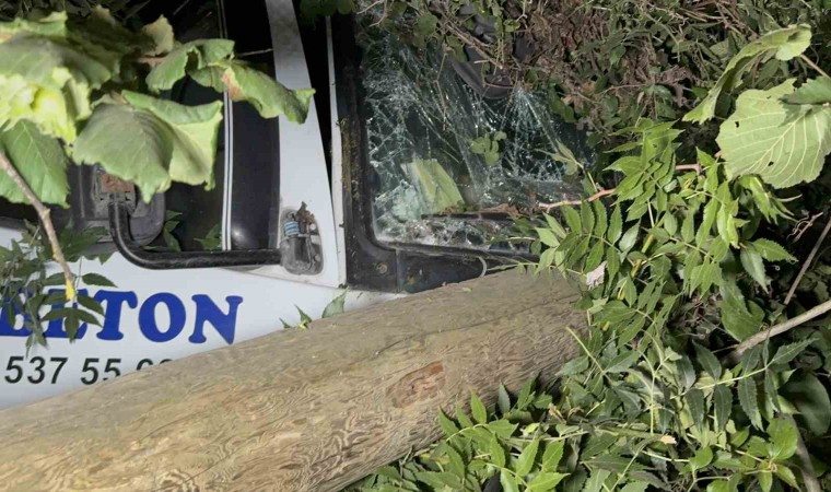 Düzce’de karşı şeride geçip otomobili biçen beton mikseri, ardından elektrik direklerine ve ağaçlara çarpıp fındıklığa uçtu. Kazada 1 kişi öldü, 1 kişi ağır yaralandı.
