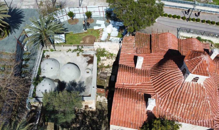 Anadolu’da kurulan ilk 4 Mevlevihaneden biri olduğu belirtilen 768 yıllık Antalya Mevlevihanesi’nin bahçesindeki tarihi hamam, beton kütlelerinden arındırılıp aslına uygun restore edilerek ziyarete açılacak. Osmanlı ve Selçuklu Dönemine ait 2 kapısı bulunan hamamdaki çalışmaların 1 yıl içinde tamamlanması planlanıyor.