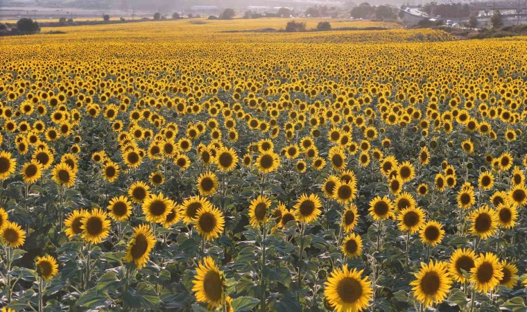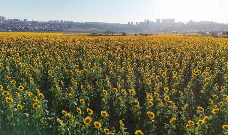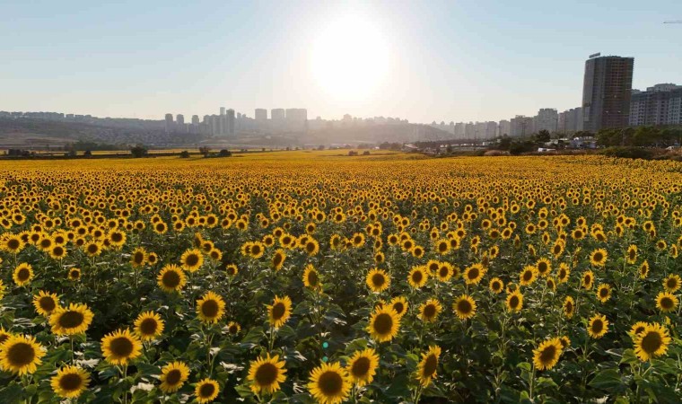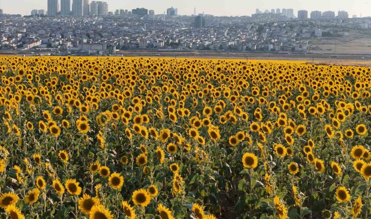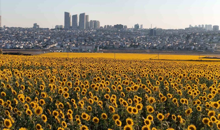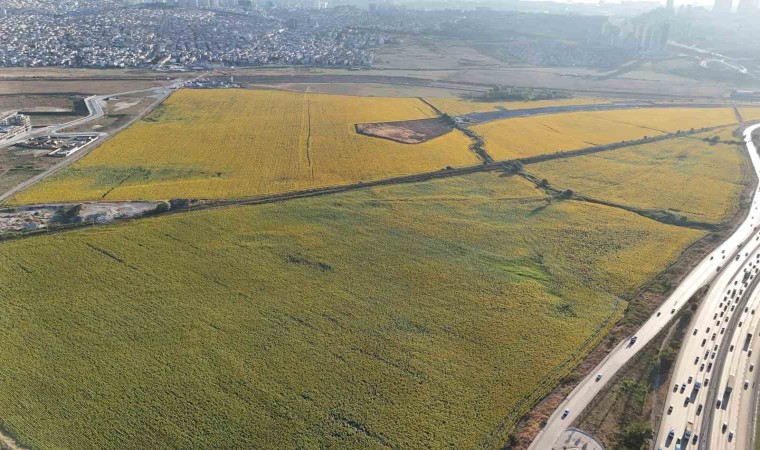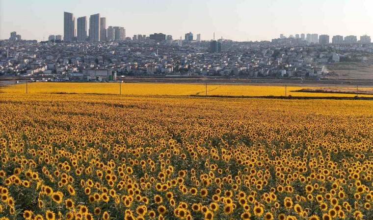 Betonlaşan İstanbul’un ortasında kalan 5 bin dönümlük devasa büyüklükteki ayçiçek tarlaları gün batımında sarıya bürünmüş halleriyle görüntülendi. Tarlaların havadan çekilen görüntüleri ise kartpostallık manzaralar oluşturdu.