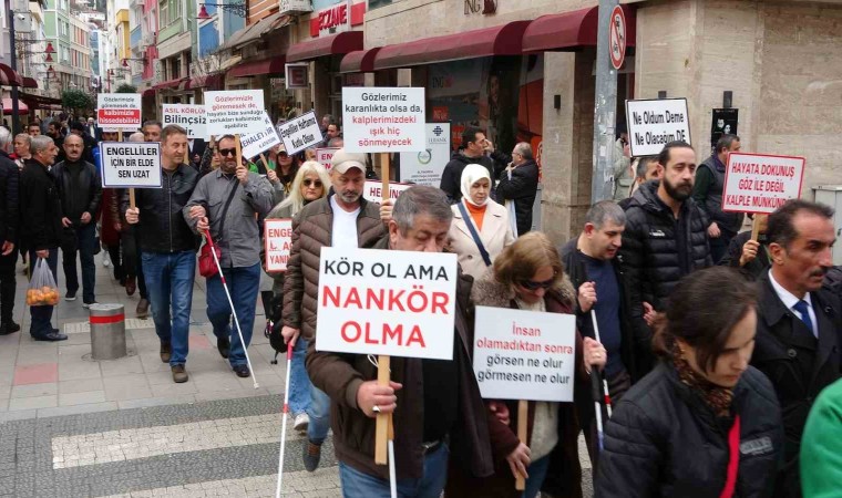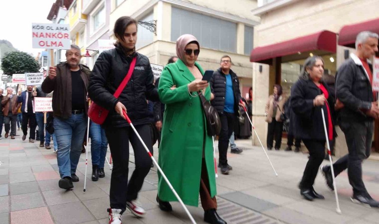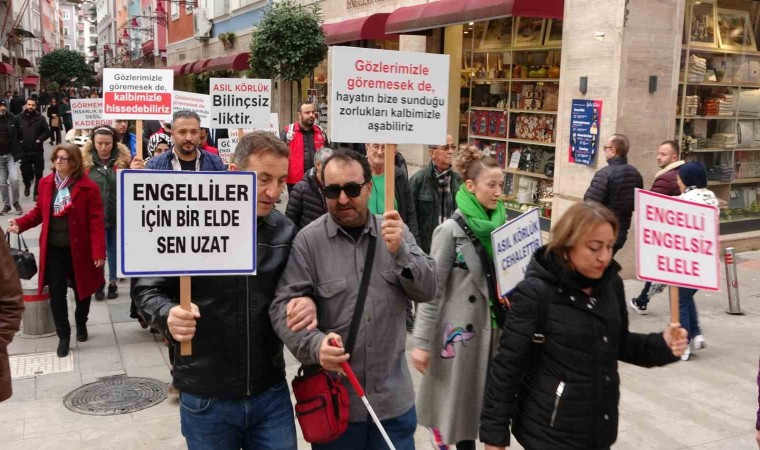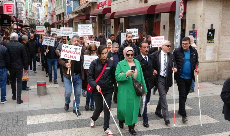 Ordu’da görme engelli vatandaşlar, beyaz bastonları ve ellerindeki pankartlar ile yürüyüş gerçekleştirdi.