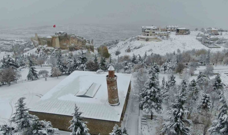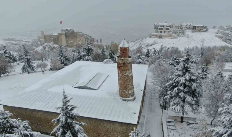 Meteoroloji’nin uyarısını yaptığı kar yağışı, Elazığ genelinde kendini gösterdi. Etkili olan kar yağışıyla birlikte medeniyetler beşiği olan 1200 rakımlı tarihi Harput Mahallesi beyaz gelinliğini giydi. Bölgede Urartu Krallığı tarafından yapılan Harput Kalesi, Pisa Kulesi’nden daha eğik olduğu tescillenen Ulu Cami minaresi, türbeler gibi birçok tarihi yapı kar ile birlikte izlenmesi keyif veren görüntüler oluşturdu. UNESCO Dünya Geçici Miras Listesi’ne kabul edilen ve dron ile görüntülenen Harput’ta kartpostallık görüntüler oluştu.
