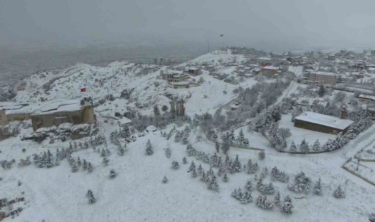 Elazığ’da etkili olan kar yağışında 1200 rakımlı tarihi Harput Mahallesi de beyaz gelinliğini giydi. Kar altında kalan tarihi yapılar kartpostallık görüntüler oluşturdu.
