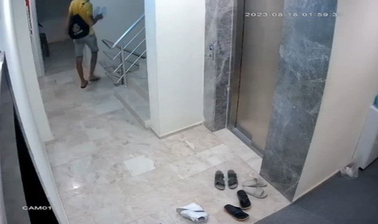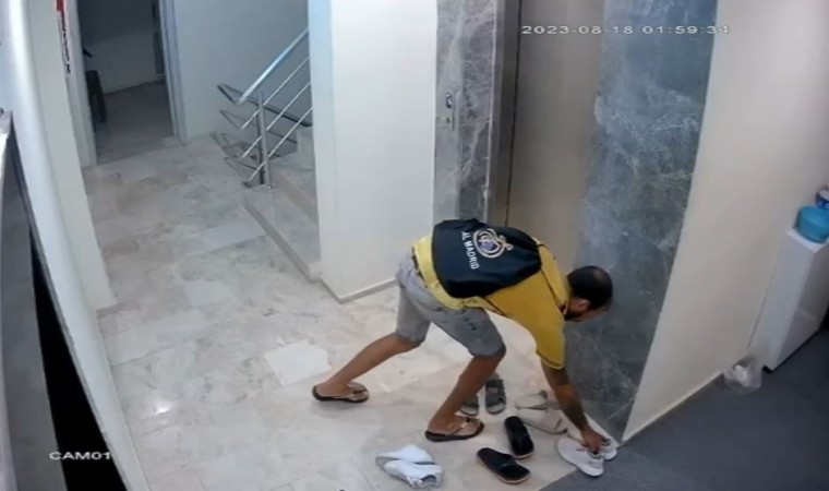 Antalya’da bir apartmana girip asansörle daireleri gezen hırsızlık şüphelisi, gözüne takılıp uzun süre baktığı spor ayakkabıyı alarak gözden kayboldu. O anlar güvenlik kameralarına saniye saniye yansırken, ayakkabının sahibi ayakkabıları getirmesi halinde polise şikayetçi olmayacağını söyledi.