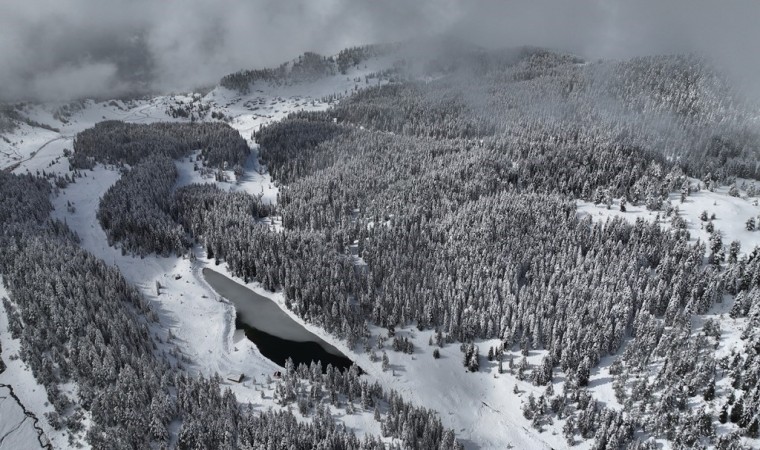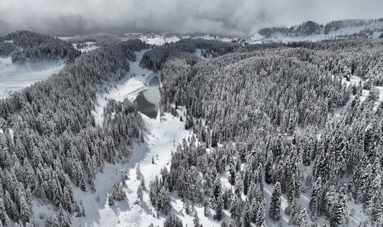 Artvin’in Şavşat ilçesinde kuşbakışı görünümü nedeniyle ’Balık Gölü’ olarak bilinen göl, geçtiğimiz günlerde yağan karla beyaza büründü. Bölgedeki eşsiz manzara havadan görüntülendi.