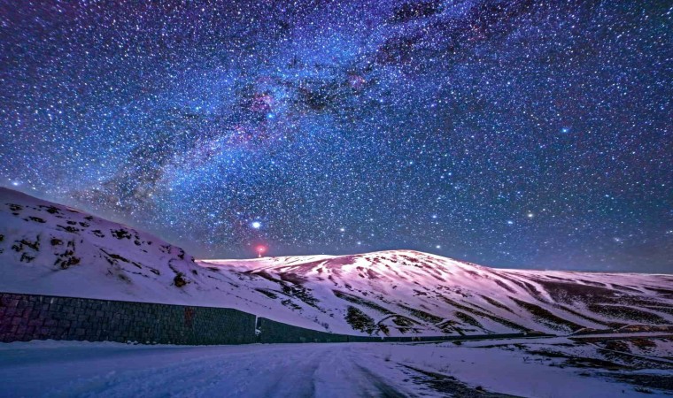 Kış aylarının uzun ve yoğun kar yağışı ile geçtiği Bitlis’te, uzay ve doğa güzelliklerini bir arada gözlemleyen Dr. Öğretim Üyesi Cihan Önen, dondurucu soğuğa rağmen başta Nemrut Kalderası’nın 2 bin 250 rakımlı zirvesi olmak üzere Bitlis’in birçok yerinde gözlem yaptı. Son günlerde etkisini sürdüren kar yağışıyla birlikte beyaza bürünen dünyanın ikinci en büyük krater gölü olma özelliğine sahip Tatvan ilçesinde bulunan 2 bin 250 rakımlı Nemrut Kalderası’nın zirvelerinde gece saatlerinde eksi 12 dereceyi gören soğuk havaya rağmen yıldızları uzun pozlama tekniğiyle görüntüledi.