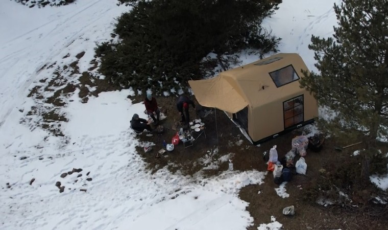 Doğa ile iç içe olmaktan mutluluk duyduğunu söyleyen İlhan Sucu ise, “Bizim hayatımız bir nebze bu. , Amacımız, kendimizi şehrin kalabalığından, sessiz sakin yerlere atıp buralarda vakit geçirmek. Kafamızı dinlemek, beraber ateş yakmak, mangal yapmak, bizim zevk aldığımız şeyler bunlar. Buraya geldiğimizde de akşam için hazırlık yaptık. Gece vakitlerinde havanın soğuk olacağını düşünüyoruz. Hava eksi 5’lere, hatta eksi 10’lara düşebilir. Kamp ateşimizi yaktık, çadırımız da var, kamp için sıcak bir ortam kurmaya çalışıyoruz” şeklinde konuştu.