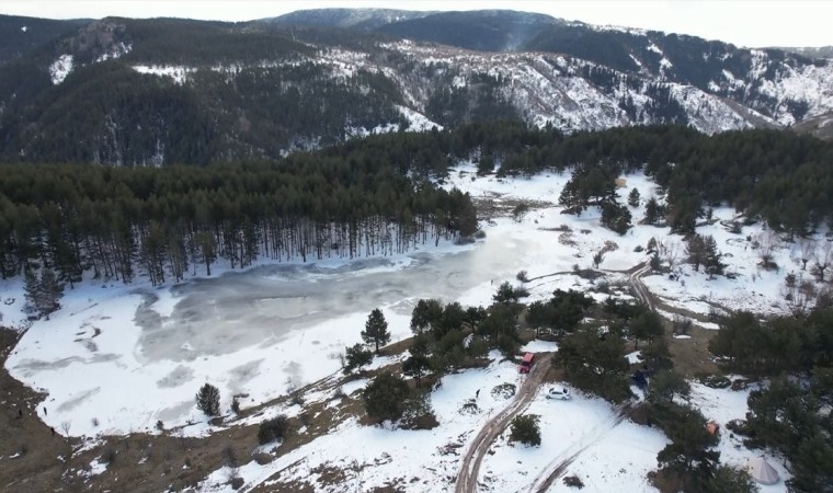 Ankara’nın Kızılcahamam ilçesinde merkeze 35 kilometre uzaklıktaki Işık Dağı’nın eteğinde bulunan yaylalar ve Karagöl Jeositi, kar yağışlarının ardından beyaza büründü. Derinliği 2 metre olan gölün çevresi, günübirlik ziyaret ve çadır kampı için de oldukça uygun olmakla birlikte 1600 metre rakımda bir heyelan çukurunda oluşmuş olması da temiz hava almak isteyenler için harika bir fırsat sunuyor. Türkiye‘nin dört bir yanından gelen ve doğanın tadını çıkarmak isteyen vatandaşlar Karagöl’ün yolunu tuttu. Kamp tutkunları da tabiatla iç içe vakit geçirmek için gölün etrafında çadırlar kurdu. Aileleriyle buraya gelen vatandaşlar, buz tutmuş gölün üzerinden kızaklarla kayarak karın keyfini çıkardı. Dron ile görüntülenen, etrafı beyaza bürünmüş dağlar ve çeşitli ağaçlarla çevrili olan Karagöl’de kış mevsimiyle birlikte kartpostallık görüntüler oluştu.