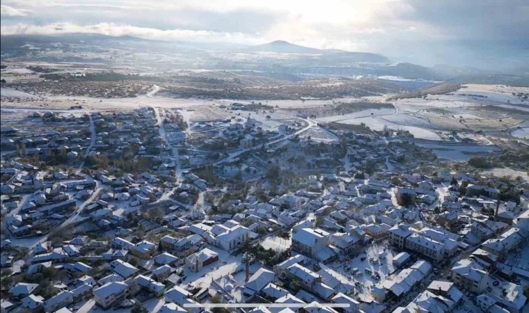 Eskişehir’in Mihalıççık ilçesinde geçtiğimiz hafta etkili olan kar yağışında ilçede bulunan binaların çatıları beyaza bürünmüş fakat sıcak havanın etkisiyle kar erimişti. Dün akşam saatlerinden itibaren kentin bazı bölgelerinde etkili olan kar, Mihalıççık’a da yağdı. Geçen haftaya göre daha fazla yağan kar sonrası ilçenin büründüğü manzara, dron ile havadan görüntülendi. İlçenin adeta beyaz gelinlik giymiş hali mest etti.