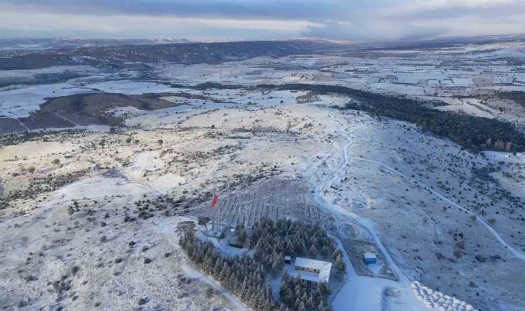 Bir hafta aradan sonra yeniden yağan karla beyaza bürünen Mihalıççık dron ile havadan görüntülenirken ortaya kartpostallık manzaralar çıktı.