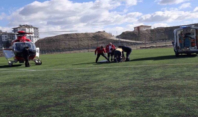 Edinilen bilgilere göre, Darende ilçesinde evinde fenalaşan 75 yaşındaki M.A., ilçedeki devlet hastanesi acil servisine kaldırıldı. Buradaki tetkiklerde beyin kanaması geçirdiği belirlenen hastanın tam teşekküllü bir hastaneye sevki için 112 Ambulans helikopter devreye alındı. Kısa sürede ilçeye gelen ambulans helikopter, ilçe stadyumundan hastayı alarak Malatya Turgut Özal Tıp Merkezi’ne nakletti.