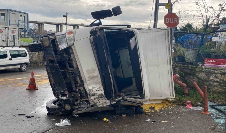 Beykoz’da dik yokuştan aşağı doğru inen bir kamyon kayarak devrildi. Kamyonda bulunan 2 kişi sıkışarak yaralandı.