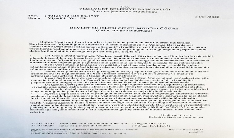 O dönem Yeşilyurt Belediyesi olarak Beylerderesi’nde alternatif bir viyadük için proje hazırladıklarını bunu da Elazığ’da bulunan Karayolları ve DSİ Bölge Müdürlükleri ile defalarca görüştüklerini anlatan Esen, ancak o dönem Büyükşehir Belediyesinden revizyon imar planlarının onaylanmaması ile birlikte projenin hızının sekteye uğradığını dile getirdi.