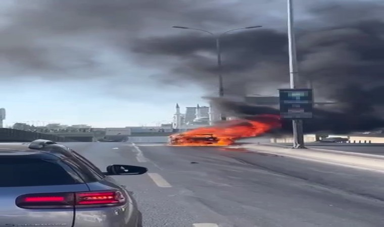 Beylikdüzü E-5’te seyir halindeki otomobil alev alev yandı. Kendini dışarı atarak yangından kurtulan şoför, aracı yeni tamirden aldığını söyledi.