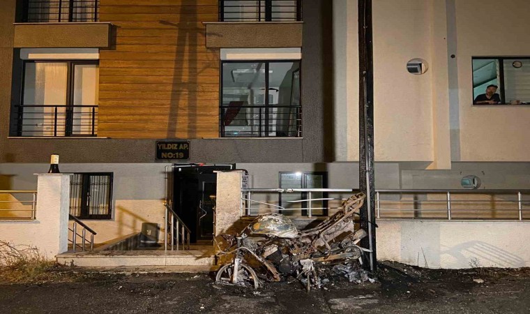 Beylikdüzü’nde bina önünde bulunan doğal gaz kutusunda henüz bilinmeyen bir nedenle yangın çıktı. Alevlerin metrelerce yükseldiği yangında park halindeki motosiklet küle dönerken binada bulunan 2 dairenin de camları hasar gördü.