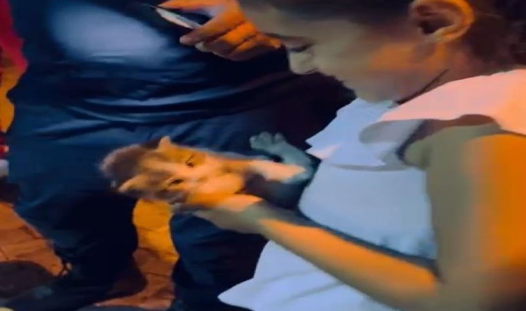 Kedinin ekiplerce araçtan çıkarılma anı ise cep telefonu kamerasına yansıdı. Görüntülerde, aracın alt ve motor kısmında çalışma yapan itfaiye ekipleri kediyi aracın alt kısmından kurtardığı anlar yer aldı. Kurtarma anlarına şahit olan küçük bir kız ise kediyi sevip, görevlilere teslim etti.