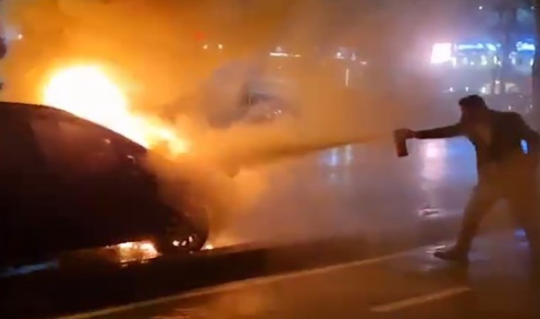 Beylikdüzü’nde park halindeki bir otomobil henüz belirlenemeyen bir nedenle alev aldı. Vatandaşın yangın tüpüyle müdahalesi yetersiz kalınca, otomobilden yükselen alevler itfaiye ekiplerinin müdahalesi ile söndürüldü.