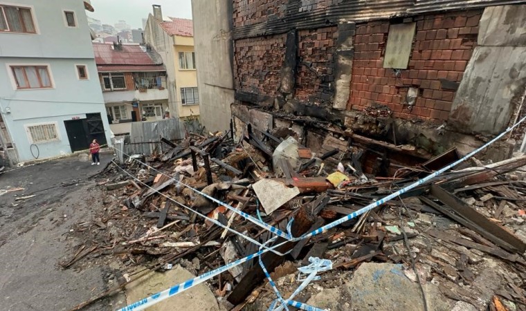 Beyoğlu’nda 1 kişinin hayatını kaybettiği yangının boyutu gün ağarınca ortaya çıktı. Küle dönen ahşap binadan geriye tahta parçaları kaldı.