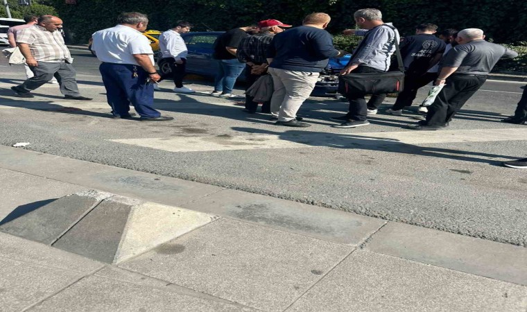 Beyoğlu’nda yolun karşısına geçen bir vatandaşa otomobil çarptı. Çarpmanın şiddetiyle 2 aracın arasına sıkışan gencin bacağı koptu.