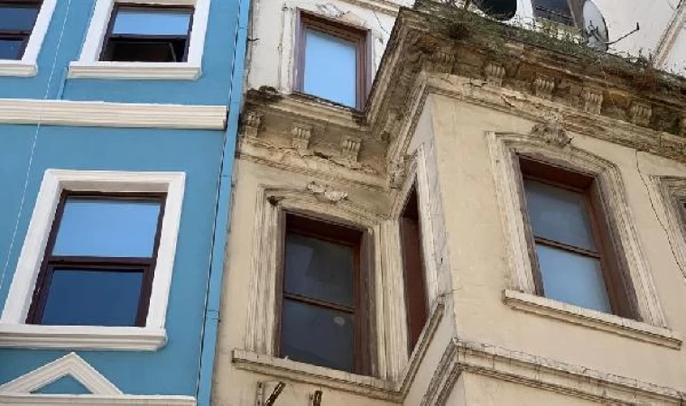 Beyoğlu’nda binadan kopan betonlar düştü, yoldan geçenler kıl payı kurtuldu