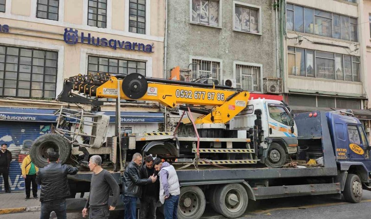 Beyoğlu Karaköy’de park halindeyken freni boşalan vinç, caddede bekleyen başka bir vince çarparak savurdu. Savrulan vinçteki sürücü yaralanırken, o sırada yoldan kimsenin geçmemesi muhtemel bir faciayı önledi.