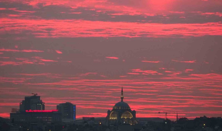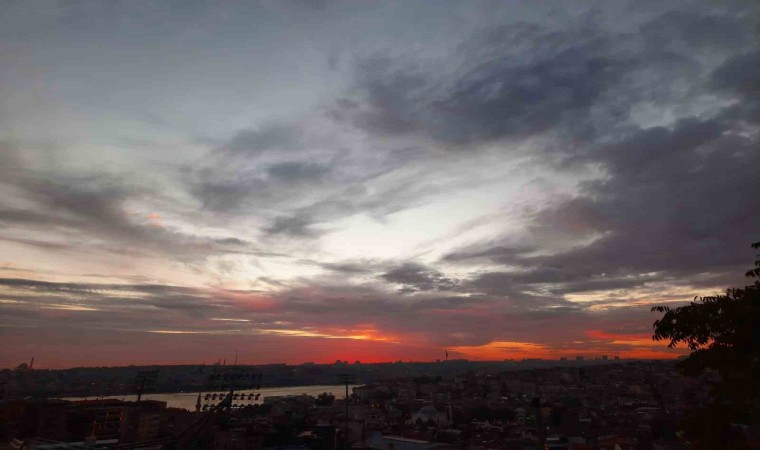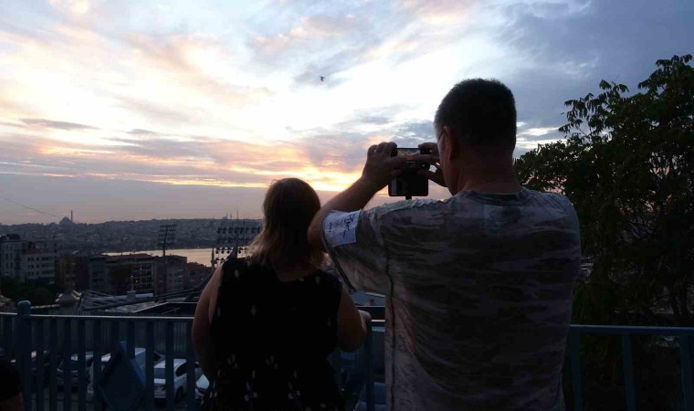 İstanbul Beyoğlu’nda gün batımı kartpostallık manzara oluştururken, vatandaşlar o anları kayıt altına aldı.