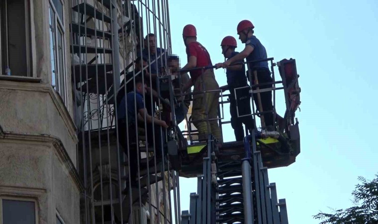 Beyoğlu'nda, bir otelin yangın merdivenine çıkarak intihar etmek isteyen bir yabancı uyruklu, polis tarafından kelepçelenerek kurtarıldı. Olay, akşam saatlerinde Beyoğlu Atıf Yılmaz Caddesi üzerinde meydana geldi. İhbar üzerine olay yerine polis, itfaiye ve sağlık ekibi sevk edildi. Polis ekipleri, uzun süre boyunca şahsı ikna etmeye çalışsa da başarılı olamadı. Bu nedenle polis, şahsı kelepçeleyerek kurtardı. İtfaiye ekibi, şahsı merdiven yardımıyla aşağı indirdi ve bu sırada zor anlar yaşandı. Kurtarılan şahıs, ambulansla hastaneye götürüldü.