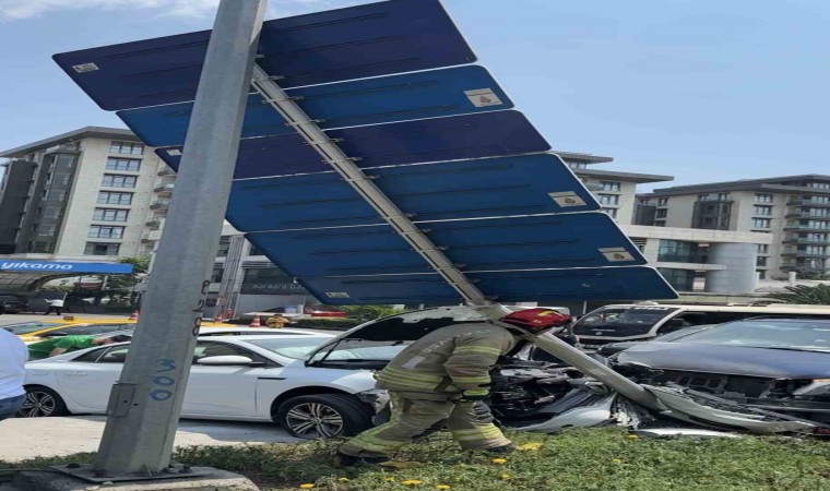 Beyoğlu’nda kavşakta kafa kafaya çarpışan iki araç, ardından yön levhasına çarptı. Kazada hafif şekilde yaralanan bir sürücü hastaneye kaldırıldı.
