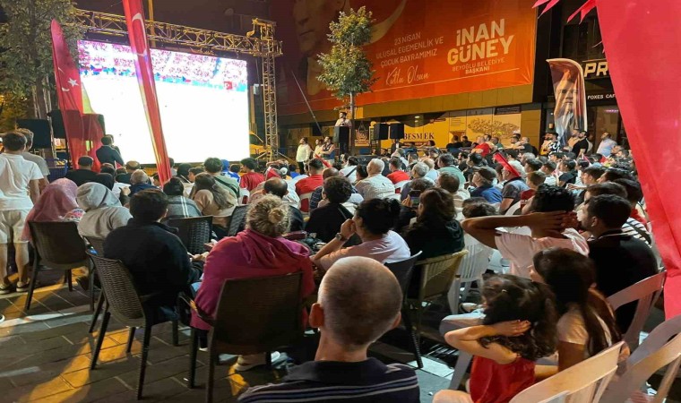 A Milli Futbol Takımı’nın EURO 2024 Avrupa Futbol Şampiyonası’nda Çekya’yı 2-1 mağlup ettiği mücadeleyi İstanbullular, Beyoğlu’nda kurulan dev ekrandan takip etti. 1-1 süren maçın son dakikalarında Cem Tosun’un kaydettiği gelen galibiyet golü büyük sevinç yaşattı.