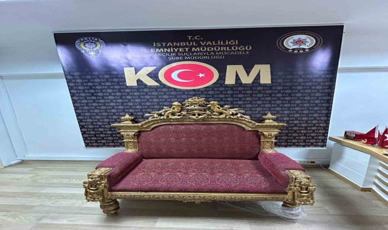 Beyoğlu’nda ihbar üzerine düzenlenen operasyonda Sultan Mehmed Reşad dönemine ait olan ve Osmanlı Saraylarında kullanıldığı değerlendirilen, kırmızı renk ve altın varaklı olarak tasarlanmış, üzerinde batılılaşma dönemi süslemeleri bulunan, melek ve bitkisel motiflere bezeli 1 adet Saltanat Tahtı ele geçirildi. Genç Osmanlı dönemine ait olduğu değerlendirilen tahta el konulurken 1 kişi gözaltına alındı.