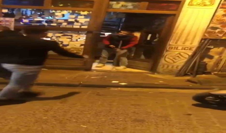 Beyoğlu’nda kız arkadaşına bakıldığını iddia eden alkollü kişiler arasında satır ve sopalı kavga çıktı. Yanlışlıkla arkadaşı tarafından kafasına sopayla vurulan bir kişi ise yaralandı. Yaşananlar vatandaşın cep telefonu kamerasına anbean yansıdı.