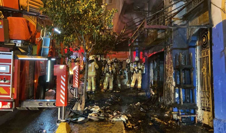 Beyoğlu’nda 5 katlı tarihi Gueive Han’ın giriş katı henüz bilinmeyen bir nedenle yandı. Nalbur dükkanı olarak işletilen giriş katı, alev alev yanarken üst katlarda mahsur kalan bir kişi itfaiye ekiplerince kurtarıldı. Tarihi handa hasar meydana geldi.