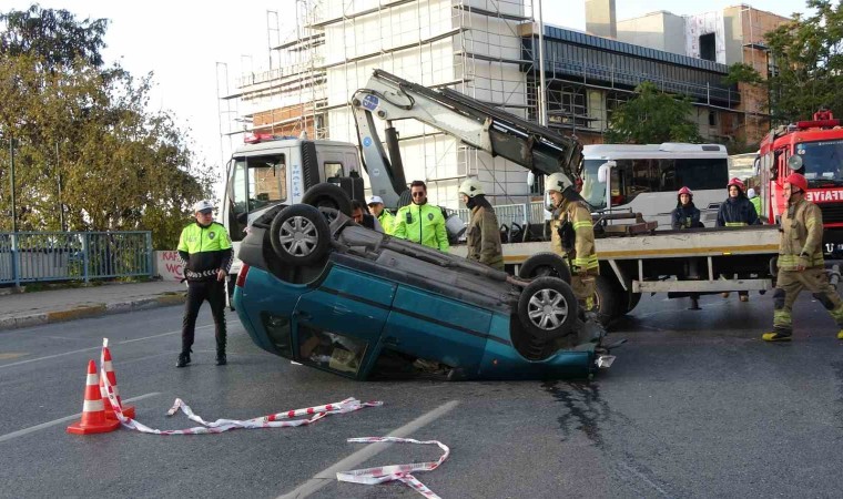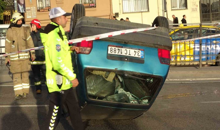 İstanbul Beyoğlu’nda virajı alamayan otomobil, takla atarak ters döndü. Kazada sürücü yaralandı.