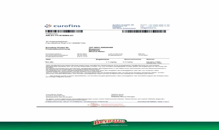 Beypazarı Maden Suları’nın Türkiye’deki Doğal Mineralli Sular Yönetmeliği’ne ve uluslararası standartlara uygunluğunu beyan eden firma, "Dünya Sağlık Örgütü ve Amerika Birleşik Devletleri Çevre Koruma Ajansı tarafından belirlenen parametrelerin tamamında uygun değerler içinde olduğumuzu vurgularız. Haberin İsviçre kaynaklı olmasına rağmen, bu haberin yerel basında ’yüksek değer çıktı’ şeklinde sunulmasının, bilgiyi yanlış algılamaya yönelik bir çaba olduğunu düşünüyoruz. Önceki yıllarda İsviçre akredite analiz laboratuvarı EUROFİNS tarafından yapılan bor analiz sonucunu da paylaşarak, şeffaf ve doğru bilgi aktarımını sağlamaya önem verdiğimizi belirtmek isteriz. (Analiz sonucu sapma değeri ile birlikte 0,80 mg/lt’ye denk gelmektedir.) Tüm bu olumsuz haberlere ve yanlış algı oluşturma çabalarına rağmen yanımızda olan, güvenini koruyan, desteğini esirgemeyen değerli ve bilinçli tüketicilerimiz ile doğru haberi paylaşabilmek adına bizlerle iletişime geçen kıymetli basın mensuplarına teşekkürü bir borç biliriz" açıklamasında bulundu.